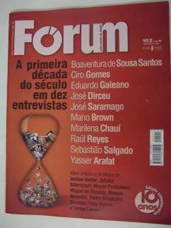 Em 2001 vi numa banca uma revista com um nome sugestivo. Na capa havia uma foto de Paulo Freire. Fiquei impressionado com o conteúdo e passei a ser um leitor cotidiano do periódico. Tratava-se da revista Fórum. Hoje são dez anos de intensa e prazerosa leitura sobre política, economia, música, teatro, literatura...