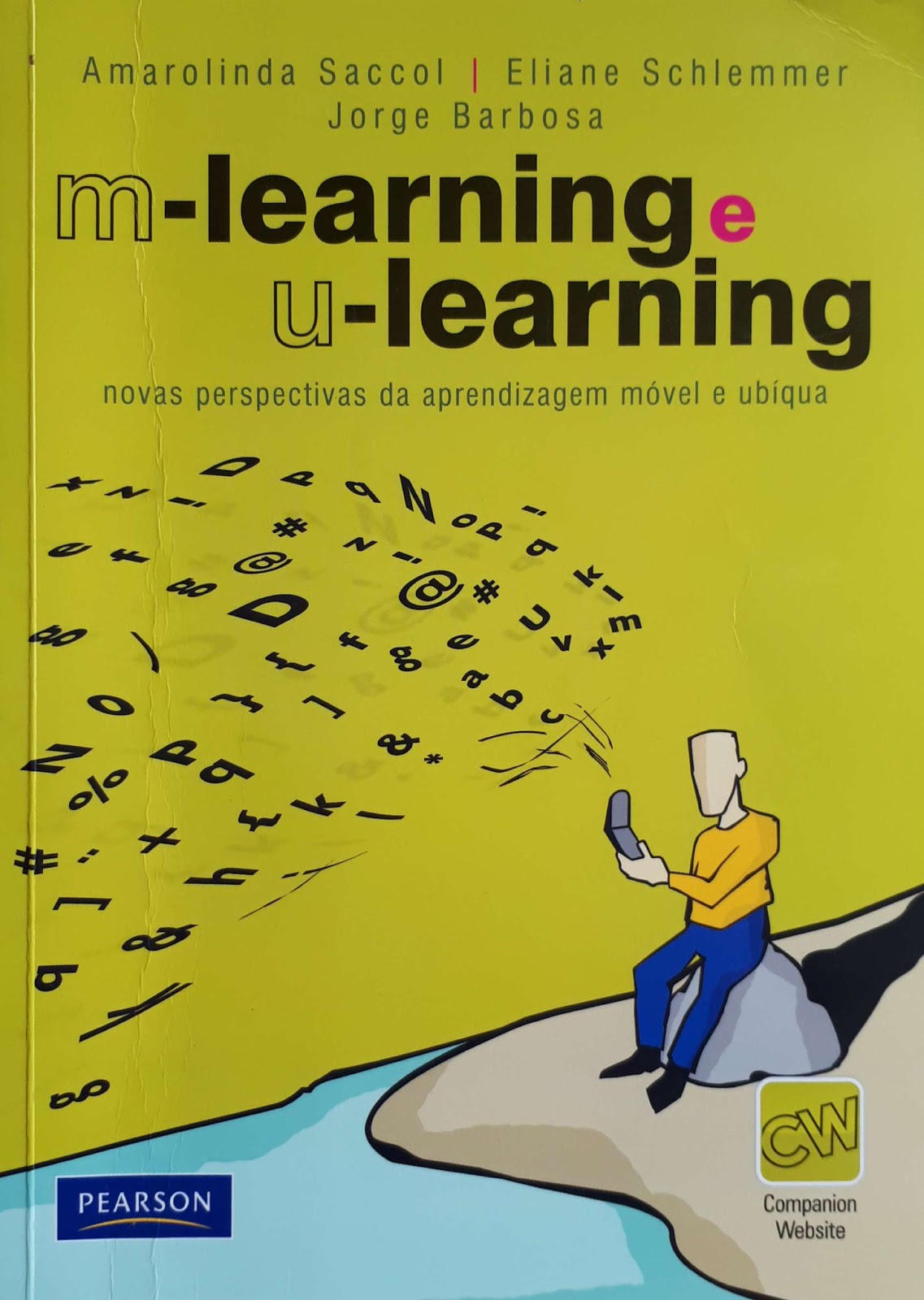 - m-learning e u-learning – novas perspectivas da aprendizagem móvel e ubíqua, de Amarolinda Saccol, Eliane Schlemmer e Jorge Barbosa: a imagem desse homem à beira da praia, plugado em um celular e esse monte de signos explodindo para explicar o mundo, desafiam o leitor a tentar descobrir mais sobre o conteúdo do livro.