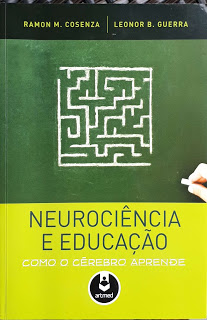 - Neurociência e educação – como o cérebro aprende, de Ramon M. Consenza e Leonor B. Guerra: ah! Esse labirinto que é a mente humana. Quanto ainda temos de aprender sobre isto. Repare no detalhe da mão segurando um giz: indicador da presença da educação, e o fundo verde, lembrando o nosso quadro de escrita escolar.