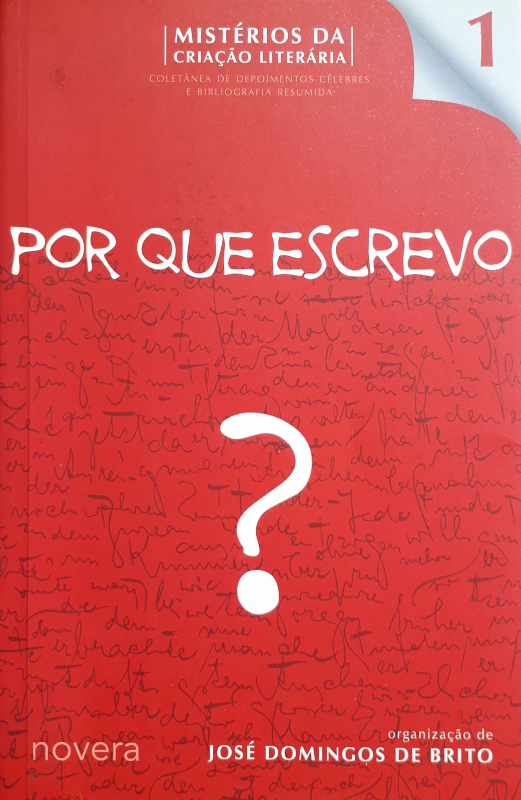 - Por que escrevo?, organização de José Domingos de Brito: peça marcada pela criatividade e pela simplicidade. No fundo textos manuscritos; no fronte, a interrogação; o detalhe da página virada à direita do leitor produz muita atração sobre o que está contido no texto.