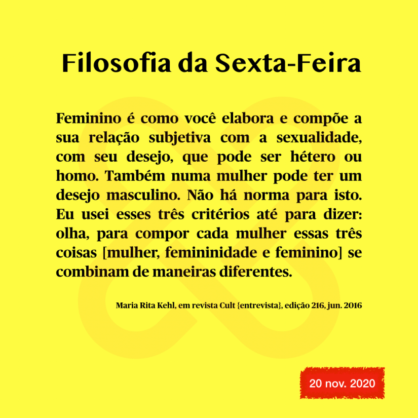 Pensamentos – Maria Rita Kehl Publicado porCleonilton Souza20/11/202029/07/2020Publicado emCartõesTags:Feminino, Mulher, Pensamento Pensamentos – Maria Rita Kehl Leia+ Cinema Cultura Trabalho Educação Comunicação Tecnologia Descubra mais sobre Canal EPraxe Assine para receber nossas notícias mais recentes por e-mail. Digite seu e-mail… Assinar Compartilhar Clique para compartilhar no LinkedIn(abre em nova janela) LinkedIn Clique para compartilhar no Facebook(abre em nova janela) Facebook Clique para compartilhar no WhatsApp(abre em nova janela) WhatsApp Clique para enviar um link por e-mail para um amigo(abre em nova janela) E-mail Clique para imprimir(abre em nova janela) Imprimir Curtir Carregando... Publicado por Cleonilton Souza Educador nas áreas de educação, tecnologias e linguagens. Ver mais posts
